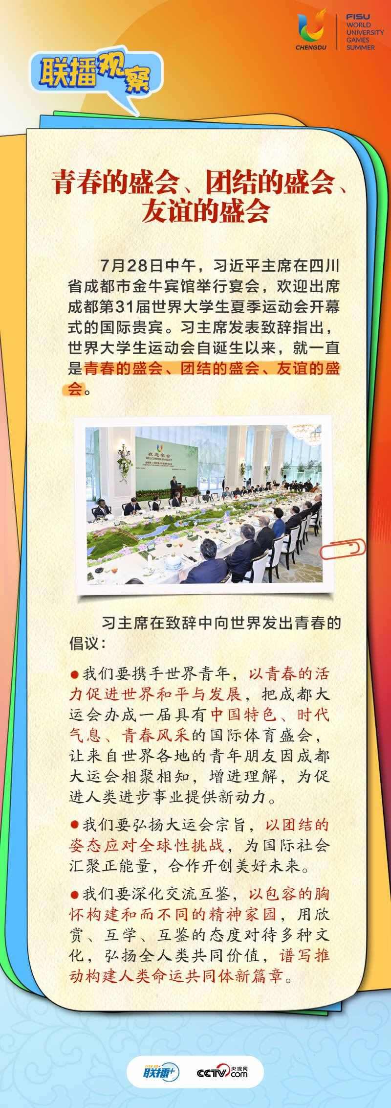 大運(yùn)會時間,我國重要的主場外交也同步拉開帷幕,習(xí)近平主席的日程格外繁忙。央視網(wǎng)《聯(lián)播+》帶您沉浸式感受這場青春盛會為世界送出的別具匠心的“四川禮物”。
