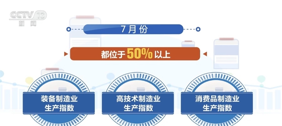 ?????? 國(guó)家統(tǒng)計(jì)局服務(wù)業(yè)調(diào)查中心二級(jí)巡視員 史朝暉:從具體的行業(yè)表現(xiàn)情況來看,7月份的石油煤炭加工、化學(xué)纖維及橡膠塑料制品,還有專用設(shè)備,鐵路、船舶、航空航天設(shè)備以及計(jì)算機(jī)通信電子設(shè)備,這些行業(yè)的生產(chǎn)指數(shù)和新訂單指數(shù)都是高于臨界點(diǎn)的,表明這些行業(yè)的產(chǎn)需兩端同步擴(kuò)張。