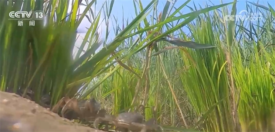 吉林省大安市圣力種植農民專業(yè)合作社負責人 王千士:現(xiàn)在已經脫第二次殼了,還能脫兩次殼,它脫的殼在土壤里一發(fā)酵變成含鈣的肥了,對土壤的培肥地力很有好處。另外,小蟹子在里邊爬行的過程中算是平地了,還能吃蟲吃草,對水稻和黑土地的改良很有好處。