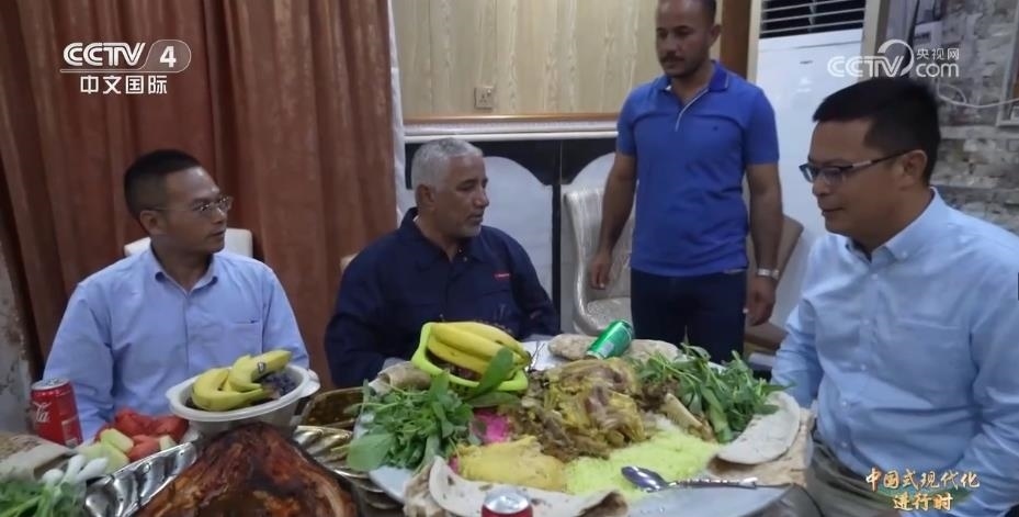 6月底,隨著當?shù)毓艩柊罟?jié)的臨近,奧德也邀請熟悉的中方員工到家里做客,用伊拉克特色烤魚、羊肉抓飯歡迎中國朋友的到來。