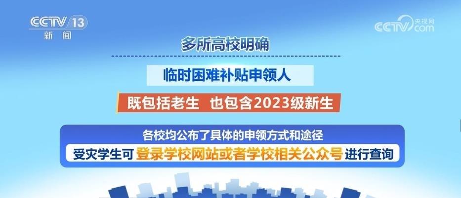 多所高校明確,臨時困難補貼申領(lǐng)人既包括老生,也包含2023級新生。各校均公布了具體的申領(lǐng)方式和途徑,受災學生可登錄學校網(wǎng)站或者學校相關(guān)公眾號進行查詢。其中,南開大學、北京航空航天大學等高校公布了資助熱線。上海交通大學、西北工業(yè)大學等高校提出,需要幫助的學生可第一時間聯(lián)系輔導員。華東師范大學提出需要幫助的同學可在學生資助管理中心網(wǎng)站后臺申請臨時性困難補助。