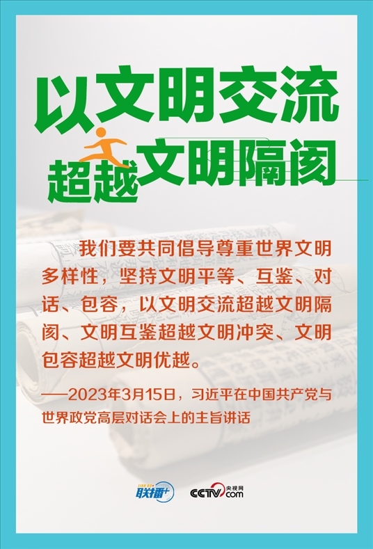 文明因交流而多彩,文明因互鑒而豐富。今年3月,在中國共產(chǎn)黨與世界政黨高層對話會上,習(xí)近平主席首次提出全球文明倡議,主張“共同倡導(dǎo)尊重世界文明多樣性”,為推動文明交流互鑒、促進人類文明進步提供中國方案。