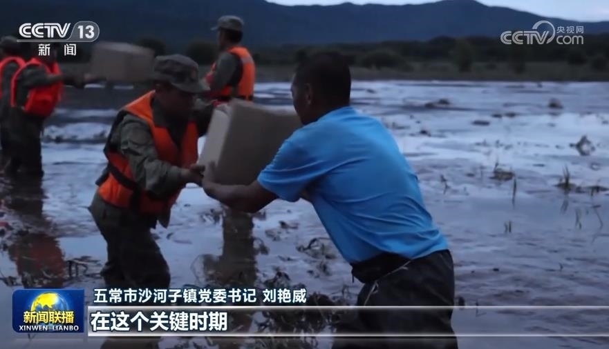 央視網(wǎng)消息(新聞聯(lián)播):黑龍江省五常市磨盤山村沈家營(yíng)屯在此次洪澇災(zāi)害中道路損毀,通信中斷,附近的大貴村被洪水圍困,成了一座“孤島”。8月6日,受領(lǐng)任務(wù)的陸軍第78集團(tuán)軍某旅黨員突擊隊(duì)想方設(shè)法將急需物資送到鄉(xiāng)親們手中。