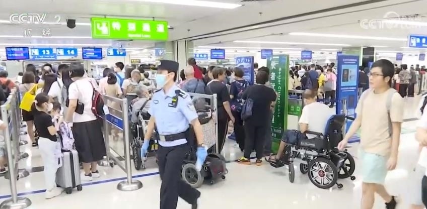 深圳邊檢總站邊防檢查處副處長(zhǎng) 金建偉:七月份進(jìn)入暑期以來(lái),我們深港的陸路口岸,邊檢機(jī)關(guān)共查驗(yàn)了旅客在2000萬(wàn)(人次)左右,日均在50萬(wàn)人次左右,已經(jīng)恢復(fù)到2019年同期的80%。