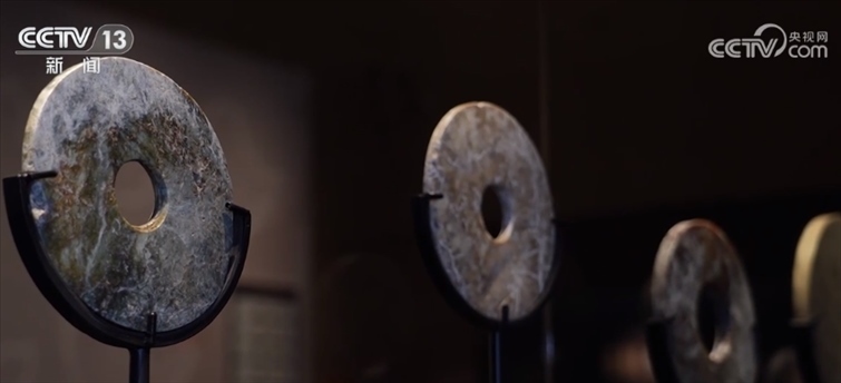 總臺記者 朱睿祺:繼續(xù)往里走,就可以看到以玉器為專題的展廳“玉魂國魄”。良渚先民圍繞對神的崇拜,設(shè)計出了一套用以區(qū)別階層、標(biāo)識身份、反映等級的玉禮器系統(tǒng)。在這里,大家能找到杭州第19屆亞運(yùn)會吉祥物“琮琮”的原型——玉琮,還有第4屆亞殘運(yùn)會的吉祥物“飛飛”的原型——良渚神鳥。