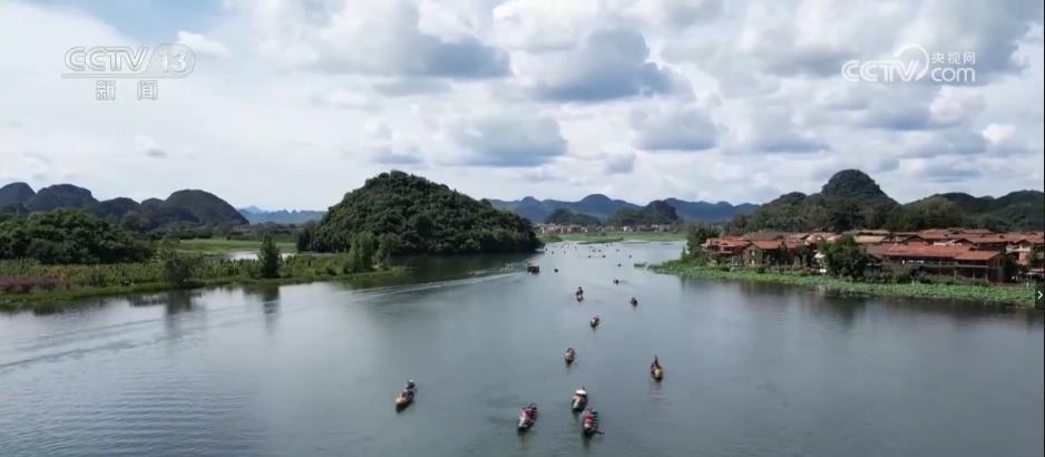 在云南普者黑,萬(wàn)畝荷塘花開(kāi)正盛,游人不僅可以泛舟賞荷嬉戲,還能進(jìn)入當(dāng)?shù)貪O村感受彝族撒尼人生活文化和非遺技藝。