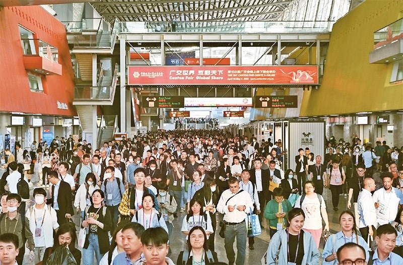 第133屆中國進出口商品交易會(廣交會)線下展于2023年4月15日至5月5日分3期舉辦,同時線上平臺全年常態(tài)化運營。本屆廣交會展覽面積、參展企業(yè)數(shù)量均創(chuàng)歷史新高,吸引220多個國家和地區(qū)的數(shù)十萬采購商報名參會。圖為4月26日拍攝的廣交會現(xiàn)場。 中新社記者 陳楚紅/攝
