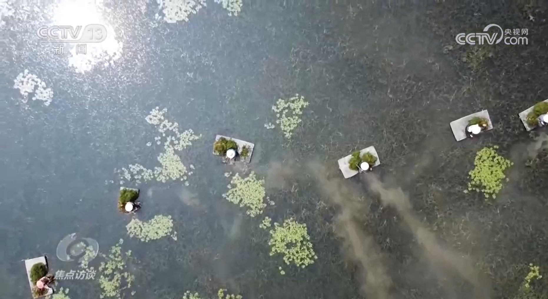 于丹:“采用立體種草,比方說有的深水區(qū)種兩層草,使得整個水層立體空間都有水草分布,另外從深水區(qū)到沿岸帶,沉水植物到浮葉植物到挺水植物到河塘?!?/p>