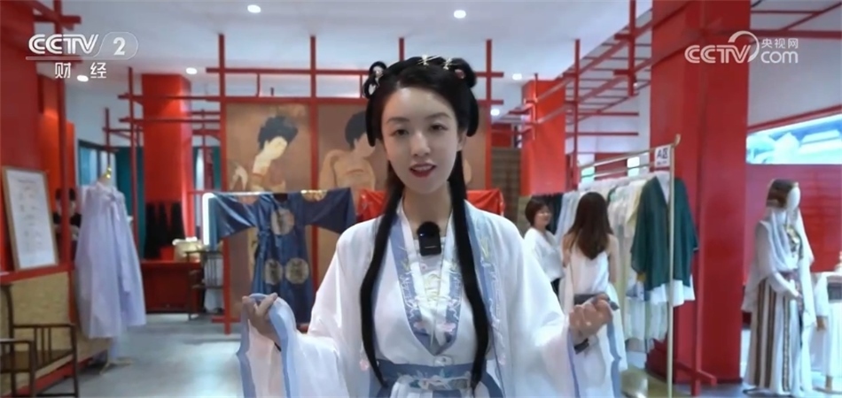 總臺央視記者 劉藝涵:沉浸式古鎮(zhèn)之旅一定少不了換裝體驗,也是不少游客來到這里首選的項目。目前,園區(qū)內像這樣的古裝店共有7家,提供租賃、銷售、化妝造型和攝影等服務?,F(xiàn)在我身上的這件就是店里的一款經典的漢服,全天的租賃價格是199元。