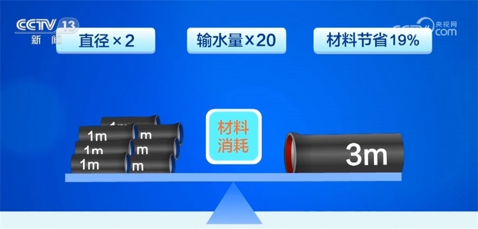黃石新興管業(yè)質(zhì)量部副部長 宋延新:我們超大口徑三米管雖然看比1米管只是大了2米的口徑,但是輸水量卻提高了20倍以上。舉個例子,要想把西湖的水抽干,用1米口徑的管需要104天,而用現(xiàn)在的3米管只要5天就可以完成了。