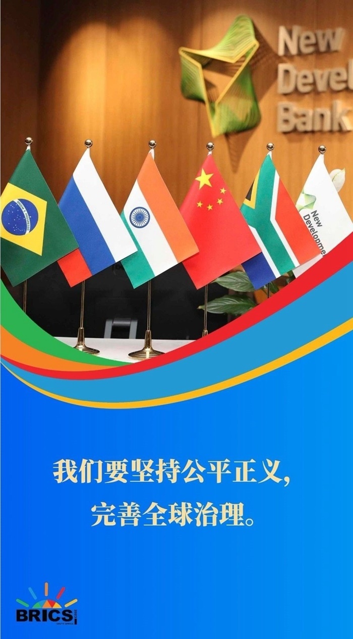 這是會晤期間,五國領(lǐng)導(dǎo)人集體合影。