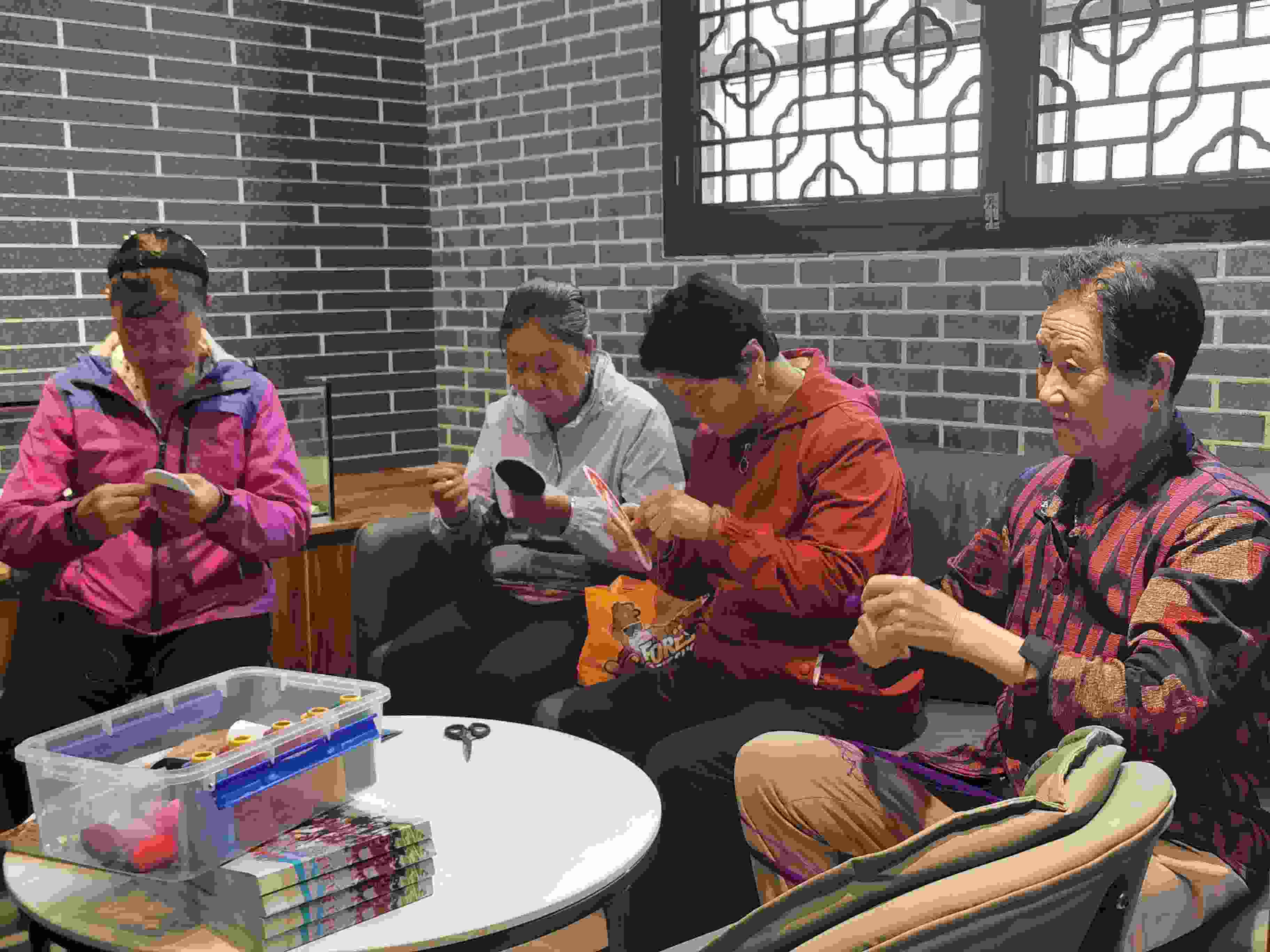 社區(qū)各族居民在一起制作手工藝品。宋琪 攝