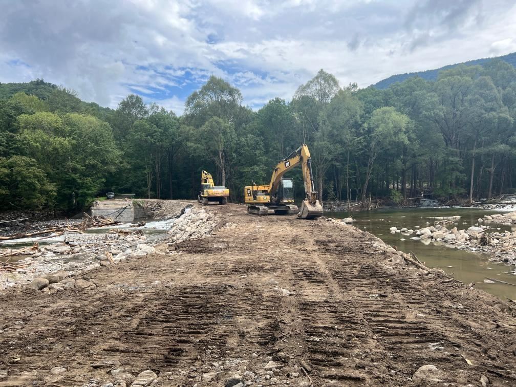 在通往龍江森工集團山河屯林業(yè)局有限公司雪谷景區(qū)的一處橋梁重建現(xiàn)場,工程隊隊長張英來正帶領工人加緊施工,現(xiàn)場機械轟鳴?!盀榱藫屪スて?,工程隊由原來的10個人,變成了近20人,工人們已經(jīng)一個月沒有回家了。”張英來說,現(xiàn)在8月末,可施工的時間越來越短,既要搶時間,又要保質(zhì)量。
