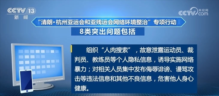 央視網消息:記者昨天(8月28日)從中央網信辦獲悉,為做好杭州亞運會和亞殘運會保障工作,決定自8月28日至10月29日開展“清朗·杭州亞運會和亞殘運會網絡環(huán)境整治”專項行動。專項行動將圍繞賽事舉辦,集中整治散布虛假信息、片面、歪曲傳播突發(fā)事件信息等8類突出問題。
