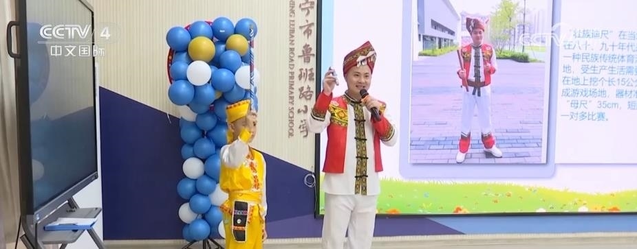 在南寧市魯班路小學(xué),同學(xué)們領(lǐng)略了獨具壯族特色的體育活動《迪尺小課堂》。同學(xué)們還在開學(xué)典禮上身穿自己設(shè)計制作的扎染服飾,手拿親手制作的紅陶、皮影等非遺作品,表演了一場非遺秀。
