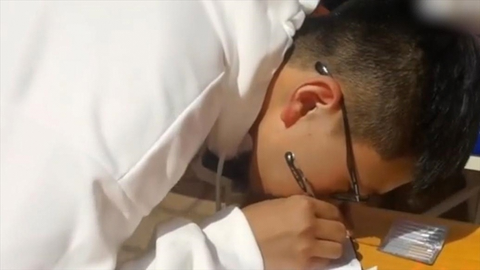 8月30日,山東中醫(yī)藥大學(xué)針灸推拿學(xué)院迎來一個(gè)特殊的新生。因?yàn)榍嗌倌挈S斑變性,欒新業(yè)從初二開始就只能借助放大鏡讀書。今年他以562分的成績(jī)考進(jìn)山東中醫(yī)藥大學(xué)。