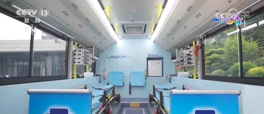 大型5G移動急救復蘇單元由兩輛公交車改裝而成,包含1輛急救治療車和1輛急救指揮車。急救治療車內(nèi)設(shè)有2個擔架位和1個搶救床位,可同時轉(zhuǎn)運多名危重病人。車內(nèi)配備了功能全面、集成度高的急救和轉(zhuǎn)運平臺,可以在車內(nèi)開展體外呼吸循環(huán)支持和緊急救命性手術(shù)等復雜急救手段。