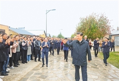 9月6日至8日,中共中央總書記、國家主席、中央軍委主席習近平在黑龍江考察。這是6日下午,習近平在大興安嶺地區(qū)漠河市北極村考察時,向當?shù)厝罕姄]手致意。新華社記者 鞠 鵬攝