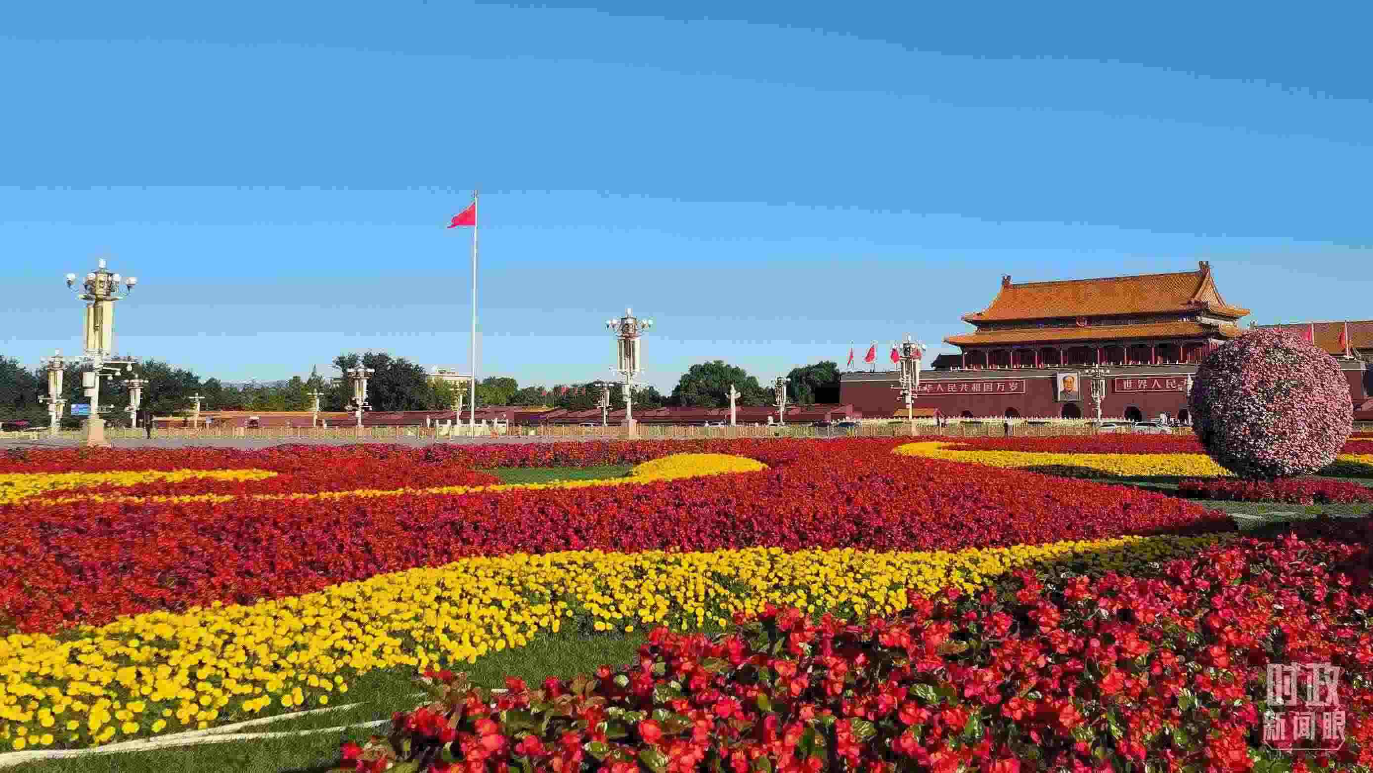 △天安門廣場(chǎng),花團(tuán)錦簇。(總臺(tái)央視記者韓銳拍攝)