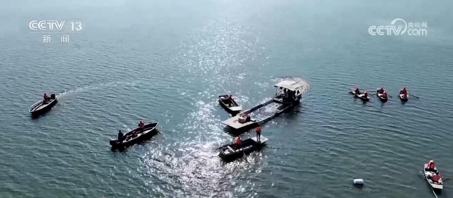 這里是河南信陽南灣湖,也叫南灣水庫,漁業(yè)資源豐富。一場(chǎng)秋雨過后,碧空如洗,山色蔥翠,水面湖光瀲滟,煙波浩渺。眼下,南灣湖迎來開漁收獲的季節(jié)。十幾艘捕魚船拉開巨大的漁網(wǎng),一聲號(hào)令,船上的漁民快速將漁網(wǎng)拉出水面,魚兒雀躍,翻騰起浪花朵朵,又是一個(gè)豐收年!