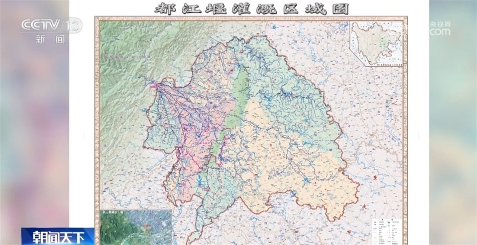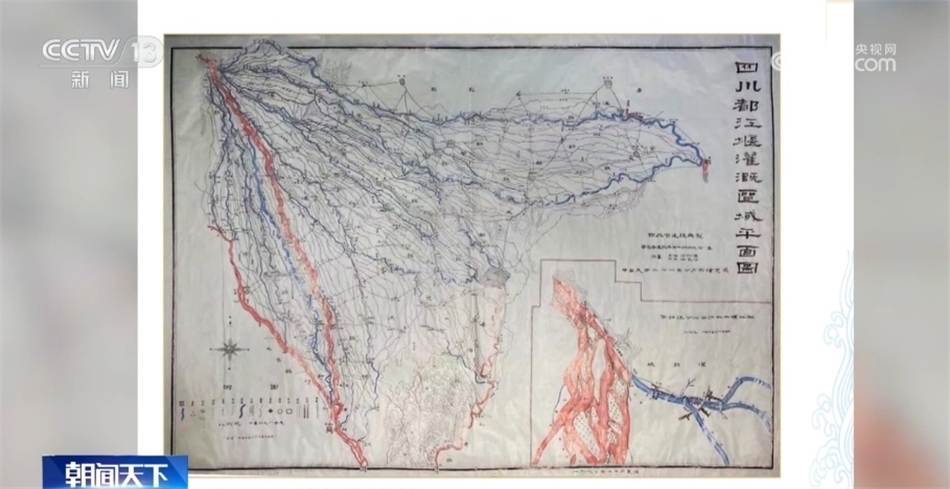 四川省都江堰水利發(fā)展中心副主任 吳鑒:這幅圖是在新中國成立之前的一張都江堰灌溉的平面圖。從圖上可以顯示,(當(dāng)時(shí))整個(gè)都江堰只灌溉了14個(gè)縣282萬畝的農(nóng)田。這是我們今年新繪制的都江堰灌溉區(qū)域圖。從這個(gè)圖上可以看到,以都江堰作為頂沖點(diǎn),整個(gè)都江堰灌區(qū)變得更大了,扇面進(jìn)一步擴(kuò)大了。