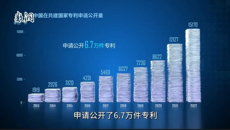 從2013年到2022年,中國在共建國家一共申請(qǐng)公開了6.7萬件專利,年平均增長率達(dá)到26%。其中,有八成以上的專利申請(qǐng)來自企業(yè)。十年間,申請(qǐng)專利的企業(yè)數(shù)量由430家增至2429家,增加了4.6倍。在基礎(chǔ)設(shè)施建設(shè)、能源、貿(mào)易、投資等領(lǐng)域合作中,中國企業(yè)將其所具有的技術(shù)優(yōu)勢,轉(zhuǎn)化成了共建“一帶一路”的強(qiáng)大動(dòng)能。