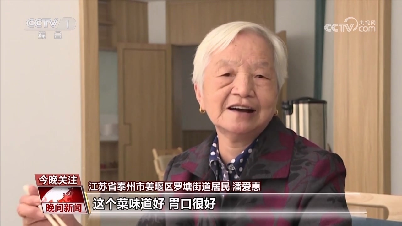 江蘇省泰州市姜堰區(qū)羅塘街道居民 潘愛惠:這個飯也煮得很好吃,這個菜味道好,胃口很好。