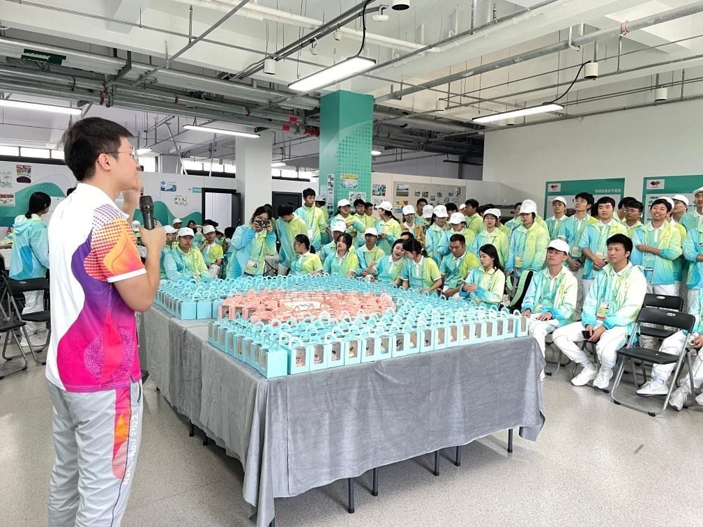 “我們早上五點(diǎn)從學(xué)校出發(fā),晚上七點(diǎn)左右從場館離開。這段時(shí)間雖然辛苦,卻很有意義,也結(jié)識到了不少朋友?!滨U明聰擦擦頭上的汗珠笑著說。