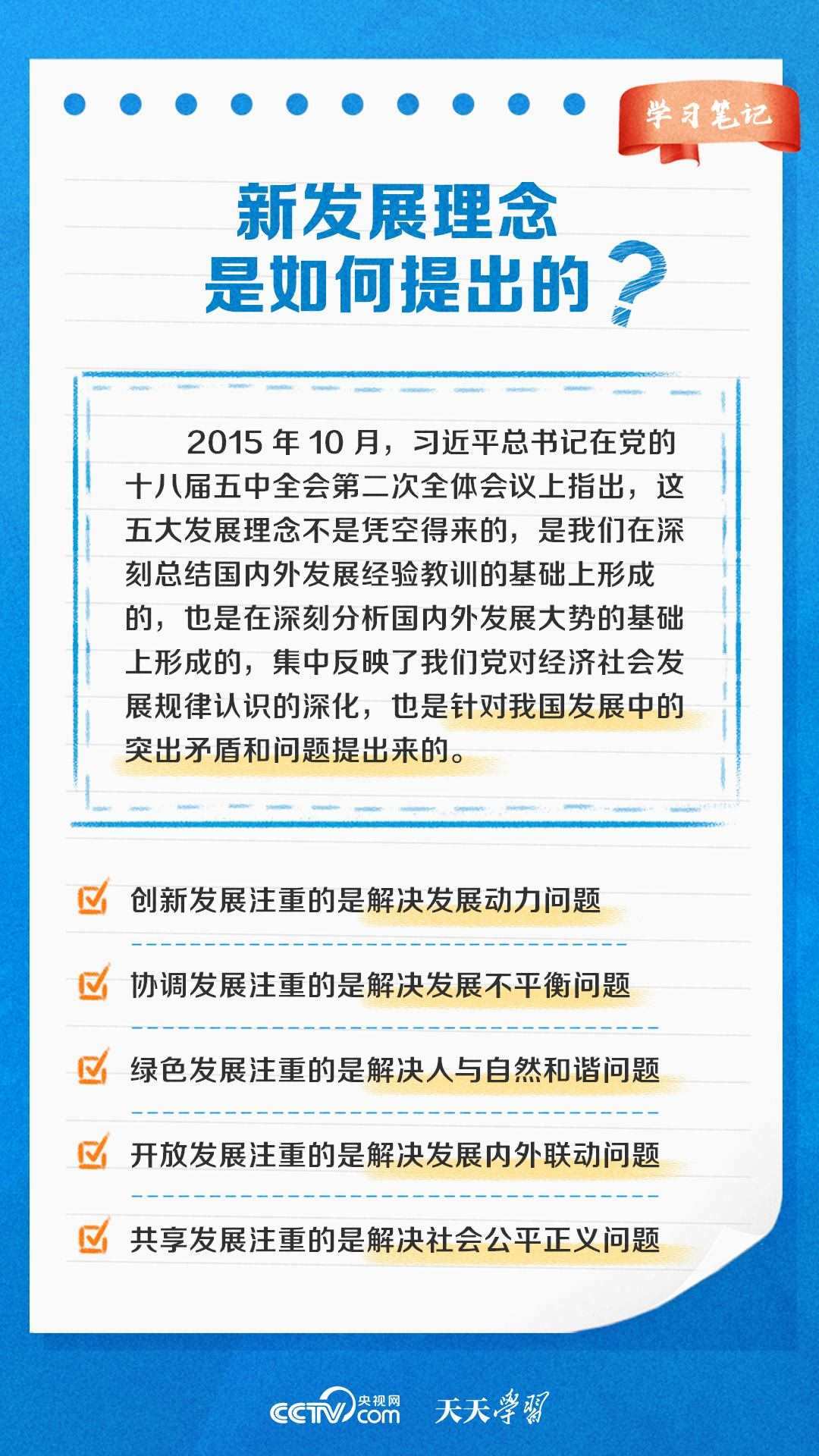 發(fā)展是解決我國一切問題的基礎(chǔ)和關(guān)鍵。為破解發(fā)展難題、厚植發(fā)展優(yōu)勢(shì),2015年10月,習(xí)近平總書記在黨的十八屆五中全會(huì)上首次提出新發(fā)展理念??倳洀?qiáng)調(diào),“新發(fā)展理念就是指揮棒、紅綠燈”,“貫徹新發(fā)展理念是新時(shí)代我國發(fā)展壯大的必由之路”。