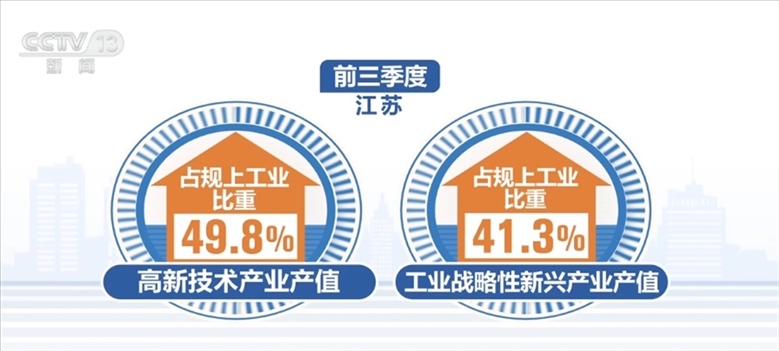 江蘇省今年以來(lái)不斷壯大先進(jìn)制造業(yè)規(guī)模,前三季度,江蘇省高新技術(shù)產(chǎn)業(yè)、工業(yè)戰(zhàn)略性新興產(chǎn)業(yè)產(chǎn)值占規(guī)上工業(yè)比重分別為49.8%、41.3%,比上半年均有提升。前三季度,新能源汽車、充電樁產(chǎn)量分別增長(zhǎng)80.2%和1.1倍。
