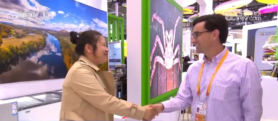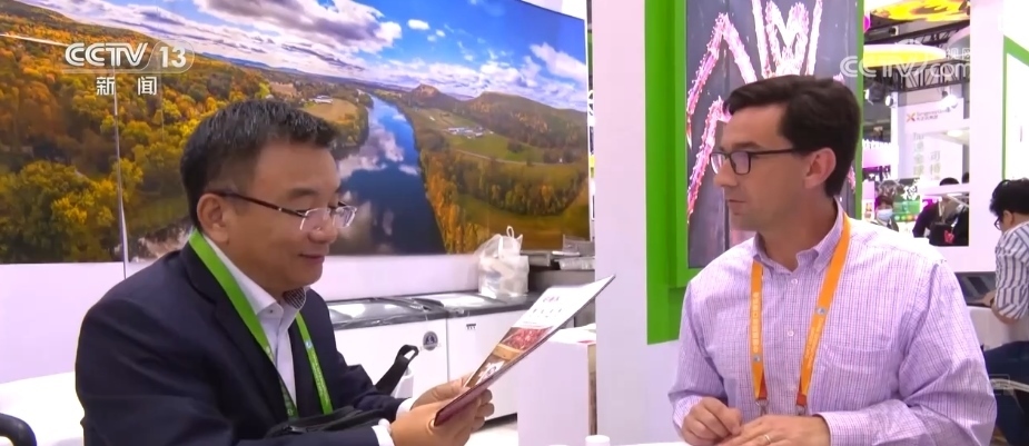 進(jìn)博會(huì)的最后一天,記者來到美國食品和農(nóng)產(chǎn)品館時(shí),美國參展商克里斯依舊在緊張地和客戶對(duì)接洽談,此時(shí)距離閉幕只剩下不到6個(gè)小時(shí)。