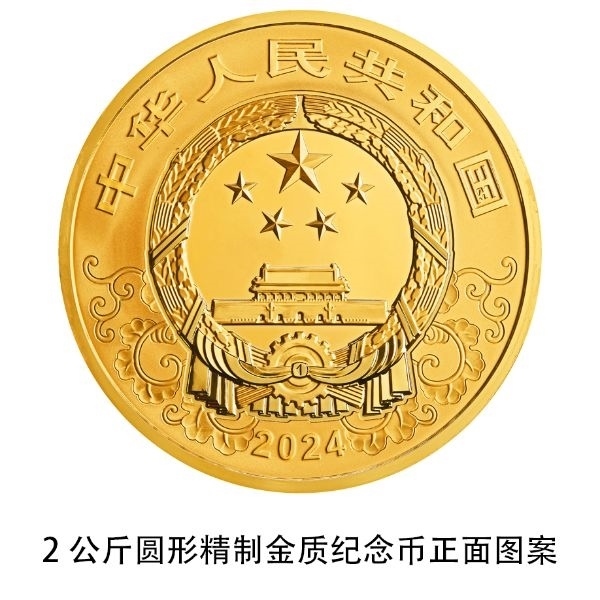 2公斤圓形金質(zhì)紀念幣為精制幣,含純金2公斤,直徑110毫米,面額20000元,成色99.9%,最大發(fā)行量50枚。
