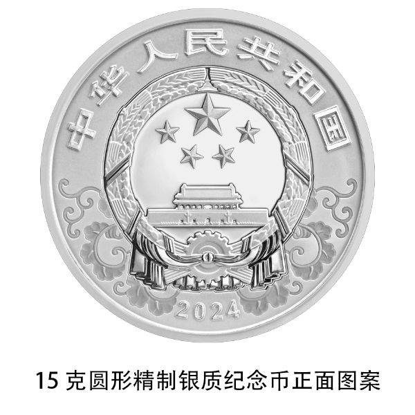 15克圓形銀質(zhì)紀念幣為精制幣,含純銀15克,直徑33毫米,面額5元,成色99.9%,最大發(fā)行量300000枚。