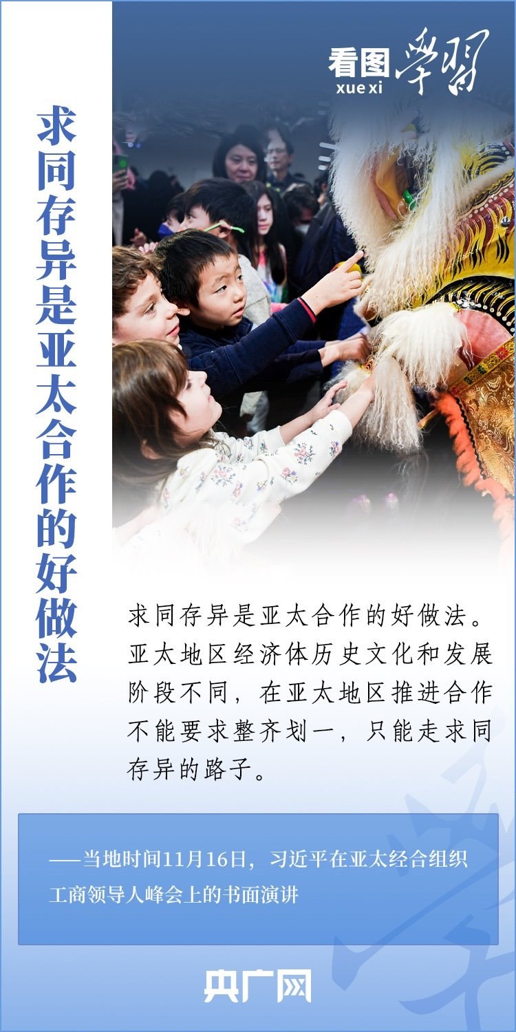 當(dāng)?shù)貢r間11月16日,國家主席習(xí)近平應(yīng)邀出席亞太經(jīng)合組織工商領(lǐng)導(dǎo)人峰會并發(fā)表書面演講。習(xí)主席深刻總結(jié)了亞太經(jīng)濟(jì)合作30年來非凡成就和啟示,對亞太合作下一個30年將走向何方這一新的時代之問提出中國答案,重申“中國打造市場化、法治化、國際化營商環(huán)境的決心不會變,一視同仁為外商投資提供優(yōu)質(zhì)服務(wù)的政策不會變”,向全球工商界發(fā)出邀請,歡迎“積極參與中國式現(xiàn)代化進(jìn)程,共享中國高質(zhì)量發(fā)展帶來的巨大機(jī)遇!”一起來學(xué)習(xí)。