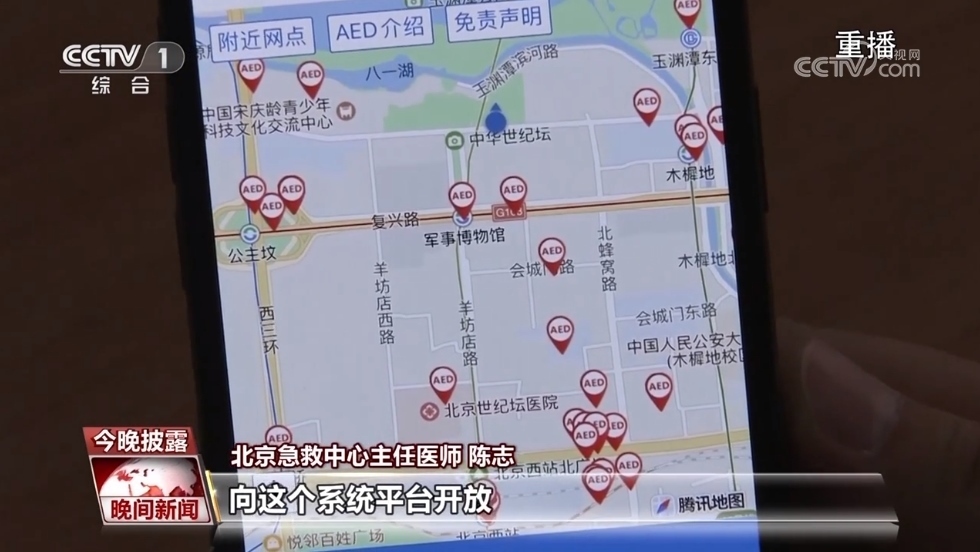 北京市衛(wèi)生健康委員會應(yīng)急辦副主任 于海玲:調(diào)度指揮系統(tǒng)里就能夠隨時看到AED的位置和一些基本的信息。120調(diào)度員在派車的同時會給呼叫者一些指引,然后協(xié)助他找到就近的AED開始施救,為我們專業(yè)的院前急救工作開展奠定一個前期的基礎(chǔ)。