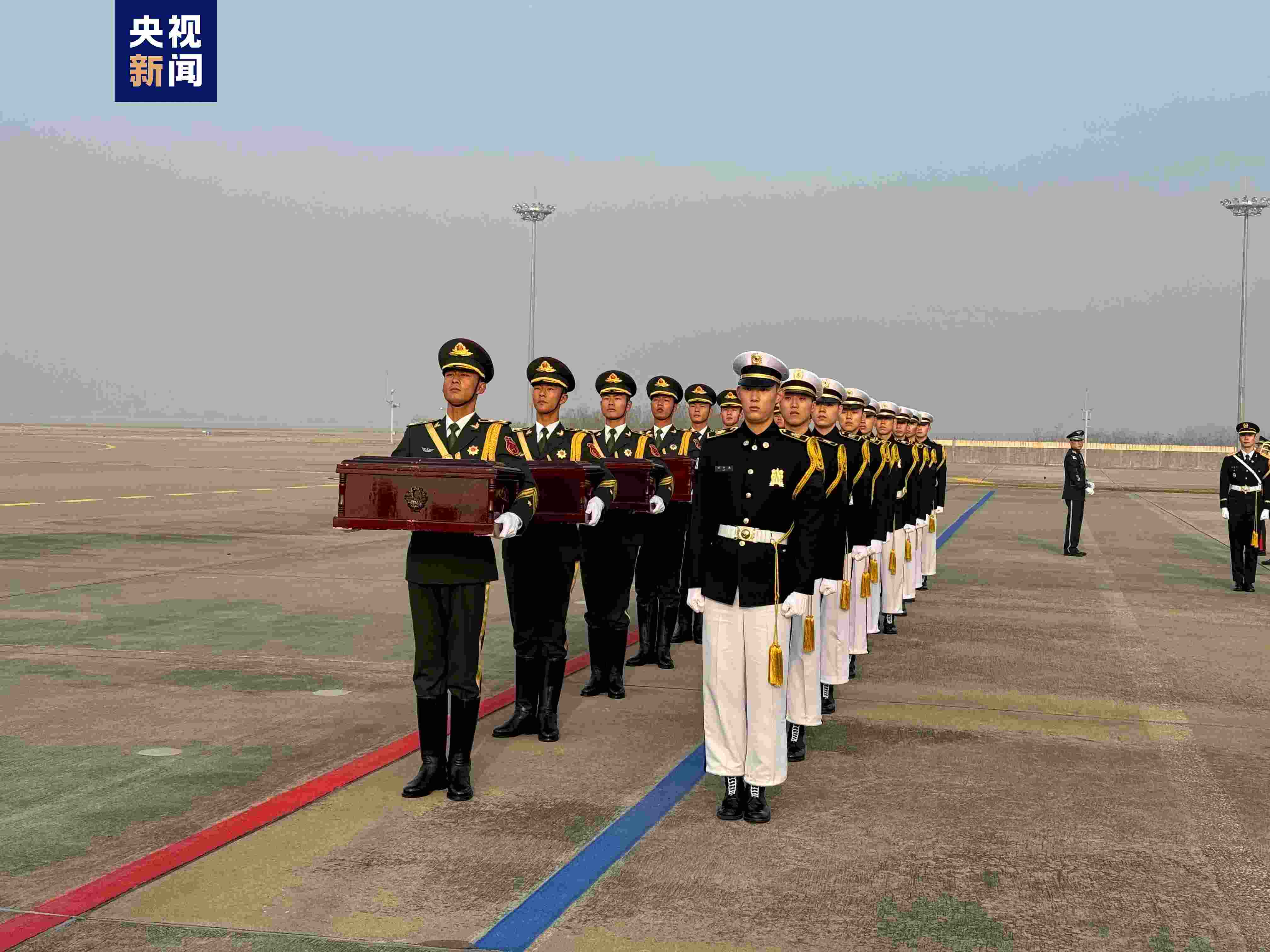 當(dāng)?shù)貢r(shí)間23日上午,中韓雙方在韓國仁川國際機(jī)場舉行第十批在韓中國人民志愿軍烈士遺骸及遺物交接儀式。此次韓方共向中方移交25名中國人民志愿軍烈士遺骸及335件遺物,交接儀式后烈士遺骸將搭乘中國空軍運(yùn)-20專機(jī)返回祖國。