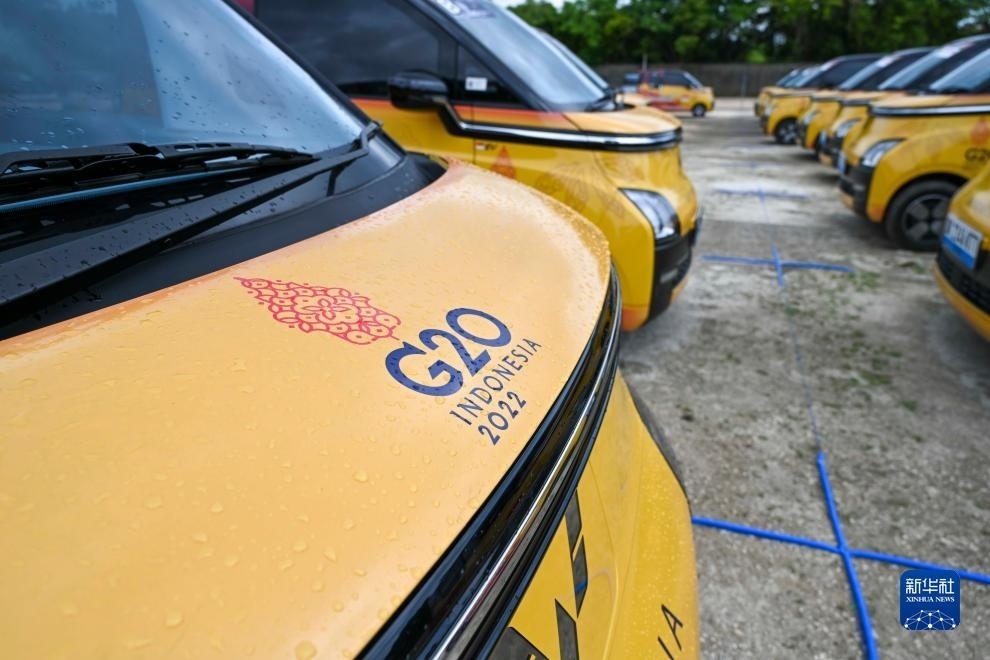 這是2022年11月12日在印度尼西亞巴厘島二十國集團(tuán)(G20)領(lǐng)導(dǎo)人第十七次峰會主會場拍攝的五菱新能源車。新華社記者 徐欽 攝