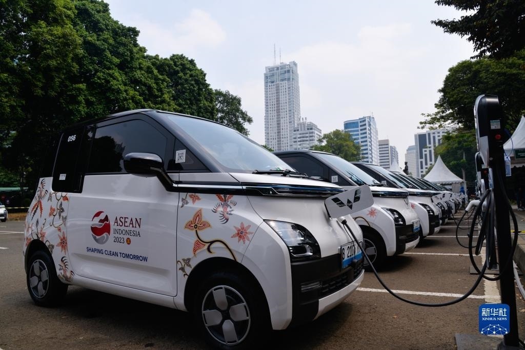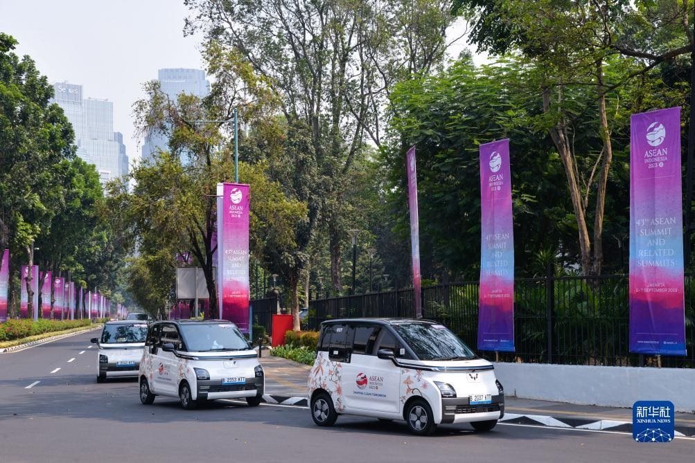 這是9月6日在印度尼西亞雅加達(dá)第43屆東盟峰會會場外拍攝的五菱新能源車Air ev。新華社記者 徐欽 攝