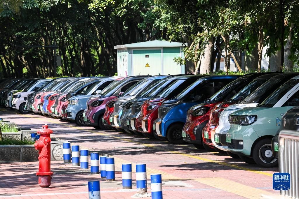 這是在廣西柳州市街頭拍攝的一處新能源汽車專用停車區(qū)(10月16日攝)。新華社記者 曹祎銘 攝