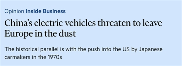 英國《金融時報》評價,中國新能源汽車可能讓歐洲望塵莫及,其出口的增長速度比分析師此前預期的要快得多。