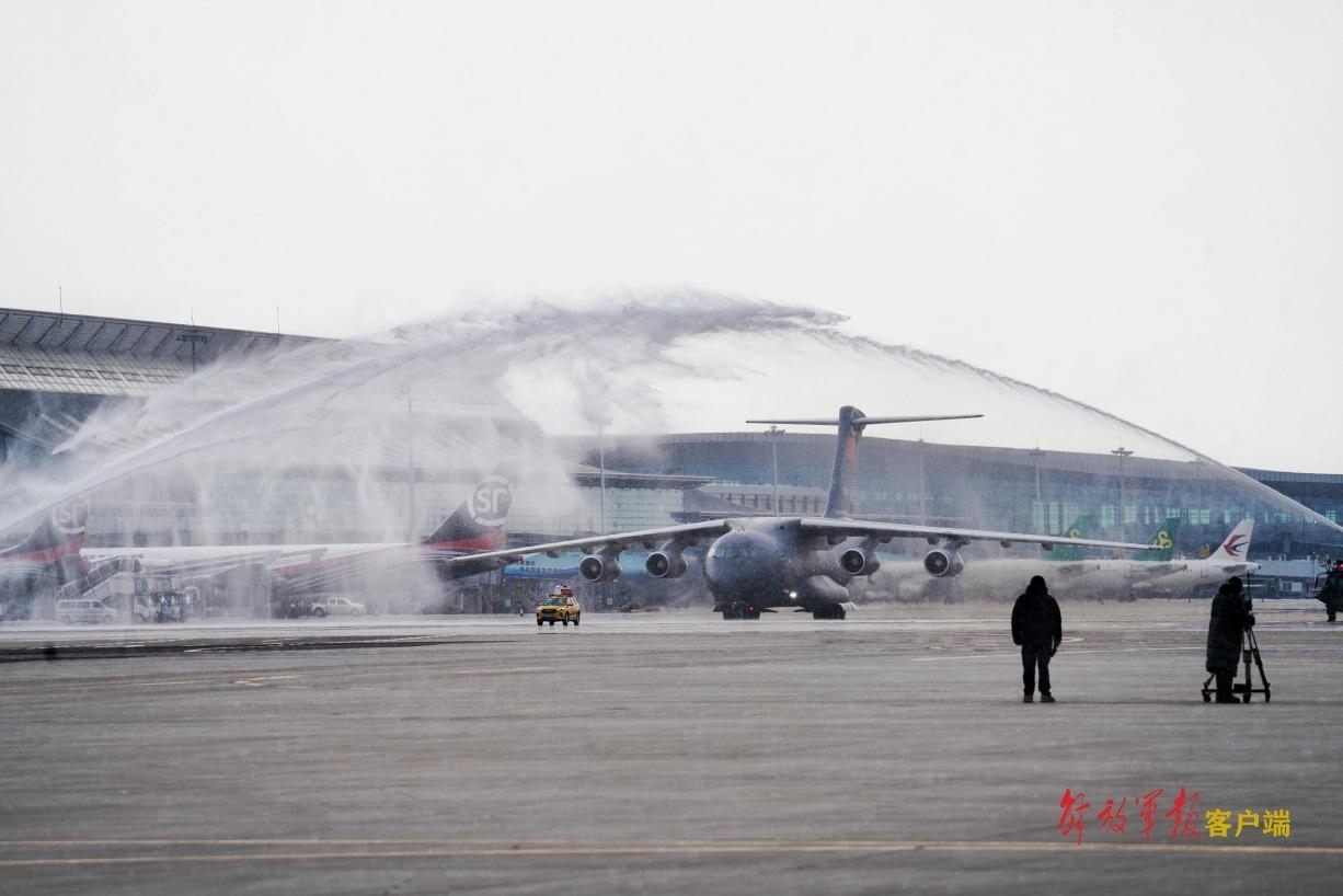 運-20專機通過“水門”。中國軍網(wǎng)記者劉丹 攝