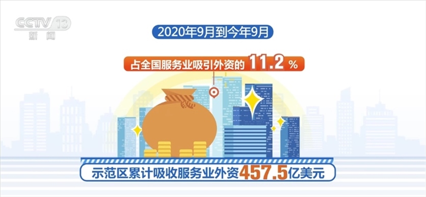 2020年9月到今年9月,示范區(qū)累計(jì)吸收服務(wù)業(yè)外資457.5億美元,占全國(guó)服務(wù)業(yè)吸引外資的11.2%;今年上半年,示范區(qū)服務(wù)業(yè)增加值占北京市地區(qū)生產(chǎn)總值比重達(dá)85.9%。