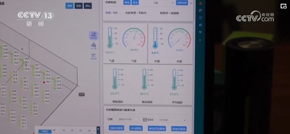 在國家“糧食綠色倉儲提升行動”的政策支持下,水稻主產(chǎn)區(qū)江西從2020年至今統(tǒng)籌資金52億元,提升糧食產(chǎn)后服務功能,電子測溫、機械通風、內(nèi)環(huán)流控溫等新科技的綜合應用,讓糧食住進了“智能空調(diào)房”。