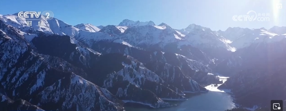 初冬季節(jié),新疆阜康天山天池景區(qū)銀裝素裹。湛藍的天空下,雪山與雪嶺云杉交相呼應,波光粼粼的湖面映照著皚皚白雪,游客們宛如置身冰雪世界。