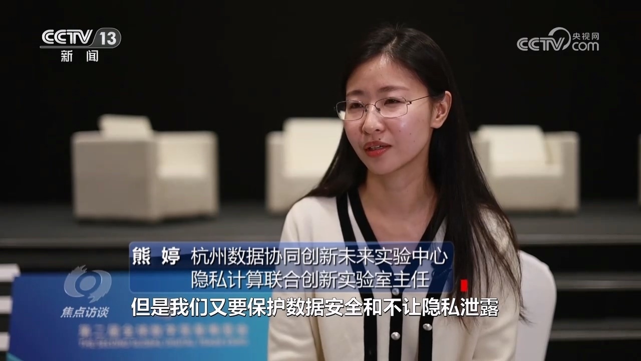 杭州數(shù)據(jù)協(xié)同創(chuàng)新未來實(shí)驗(yàn)中心隱私計(jì)算聯(lián)合創(chuàng)新實(shí)驗(yàn)室主任熊婷:“我們要加速數(shù)據(jù)要素快速的價(jià)值釋放,但是又要保護(hù)數(shù)據(jù)安全,不讓隱私泄露,現(xiàn)在天然就存在著一定的互相制約,我們?cè)趺唇鉀Q這個(gè)問題?隱私計(jì)算實(shí)際上是用密碼學(xué)、各種技術(shù)讓數(shù)據(jù)不拿出去,但是又能使用到數(shù)據(jù)的價(jià)值。要用各種技術(shù)手段、前沿技術(shù)保護(hù)自己的數(shù)據(jù),安全合規(guī)的使用數(shù)據(jù)?!?/p>