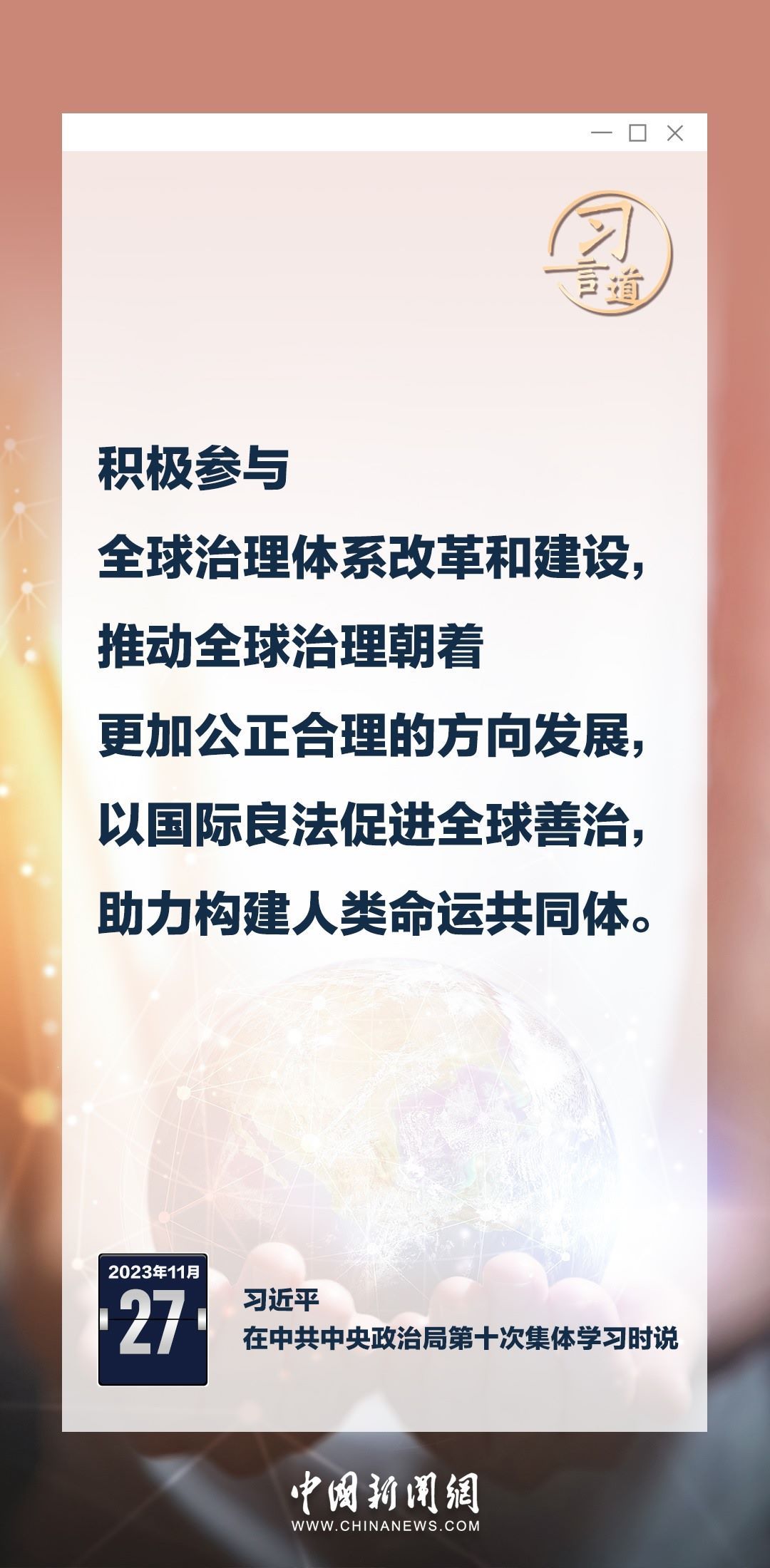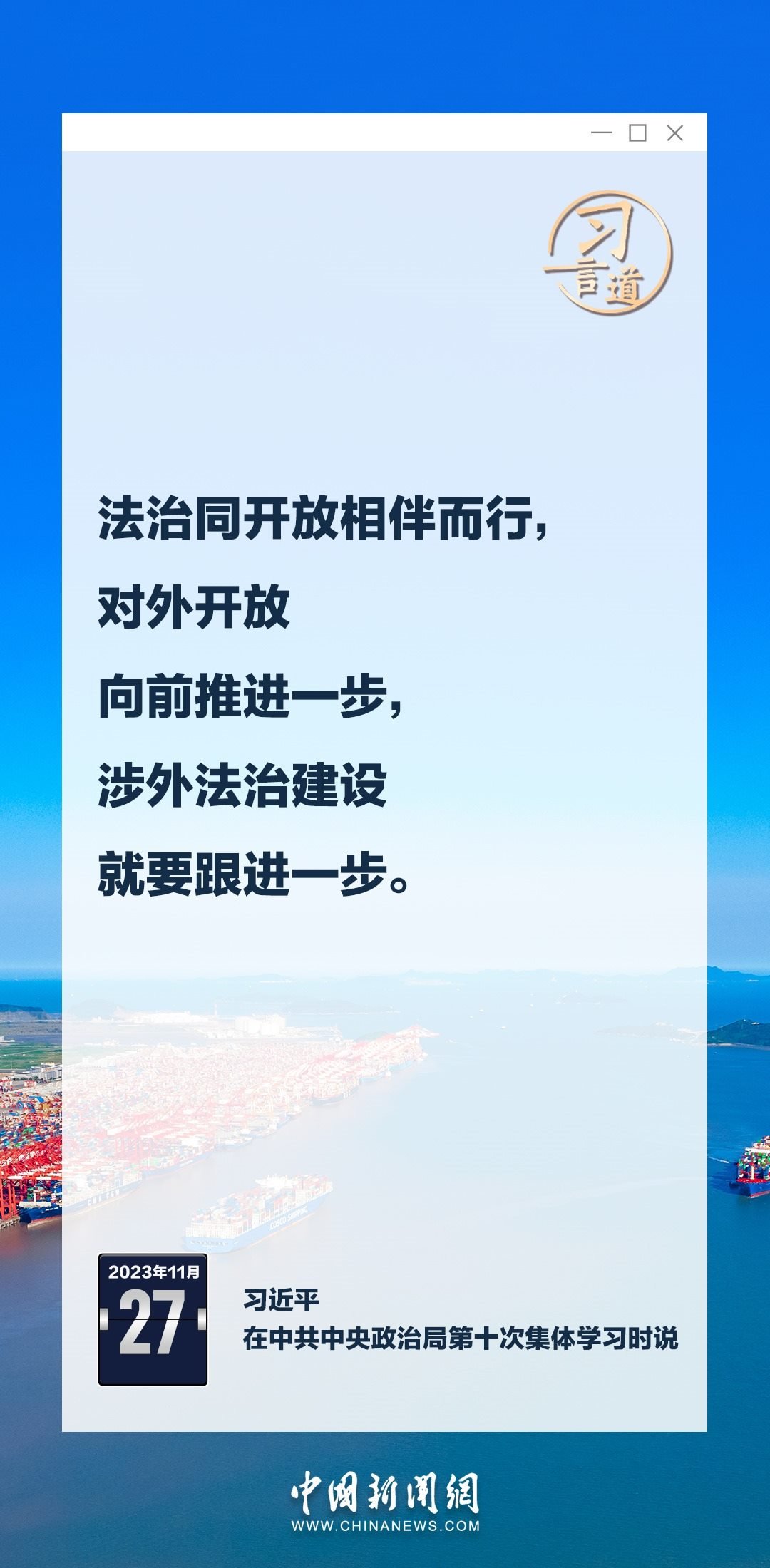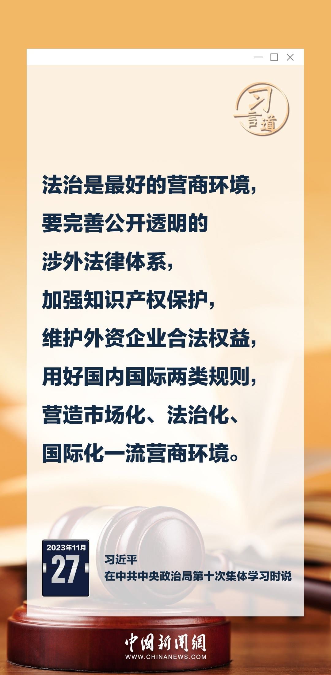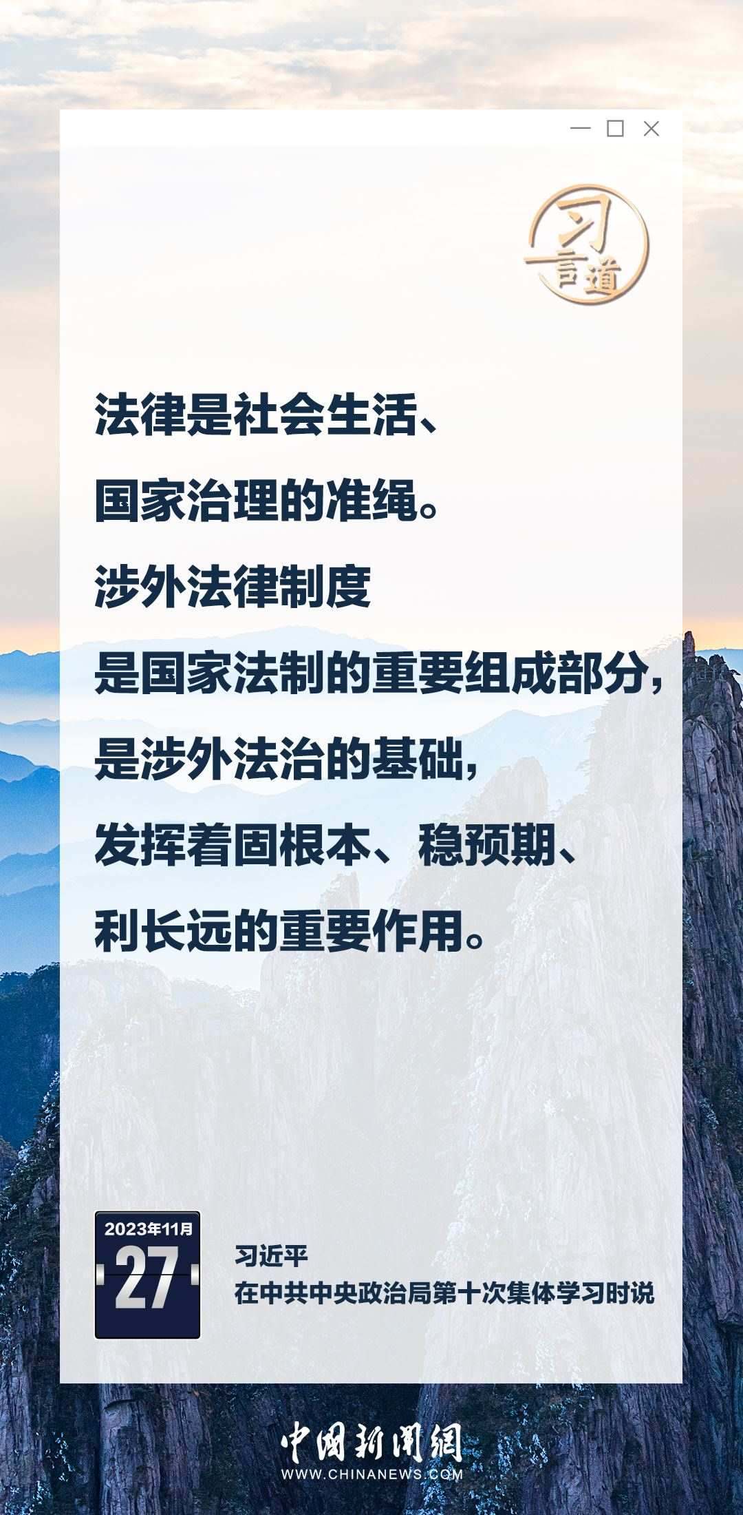 中共中央政治局11月27日下午就加強涉外法制建設(shè)進行第十次集體學習。中共中央總書記習近平在主持學習時強調(diào)——