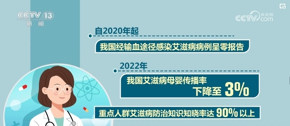 自2020年起,我國經(jīng)輸血途徑感染艾滋病病例呈零報告。2022年,我國艾滋病母嬰傳播率下降至3%,重點人群艾滋病防治知識知曉率達90%以上。