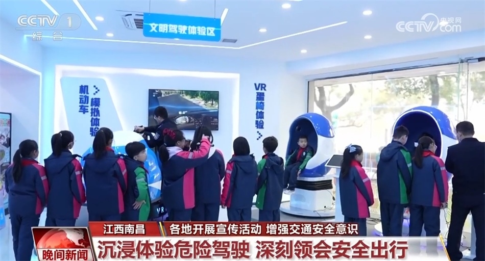 在江西南昌公安交通治理體驗中心,來自南昌市郵政路小學(xué)的同學(xué)們在民警的帶領(lǐng)下,開展了一堂別開生面的交通安全課。大家戴上VR設(shè)備,通過機動車模擬駕駛、交通事故模擬裝置等,沉浸式體驗了酒駕醉駕、超速等交通違法行為的場景?;蝿拥淖谓o同學(xué)們帶來了事故撞擊的震感,旋轉(zhuǎn)的設(shè)備更是讓同學(xué)們身臨其境地感受到酒后駕駛的眩暈。