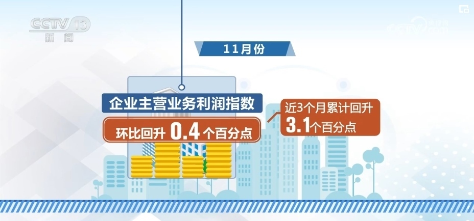 從分項(xiàng)指數(shù)來看,11月份,企業(yè)主營業(yè)務(wù)利潤指數(shù)環(huán)比回升0.4個百分點(diǎn),近3個月累計(jì)回升3.1個百分點(diǎn)。