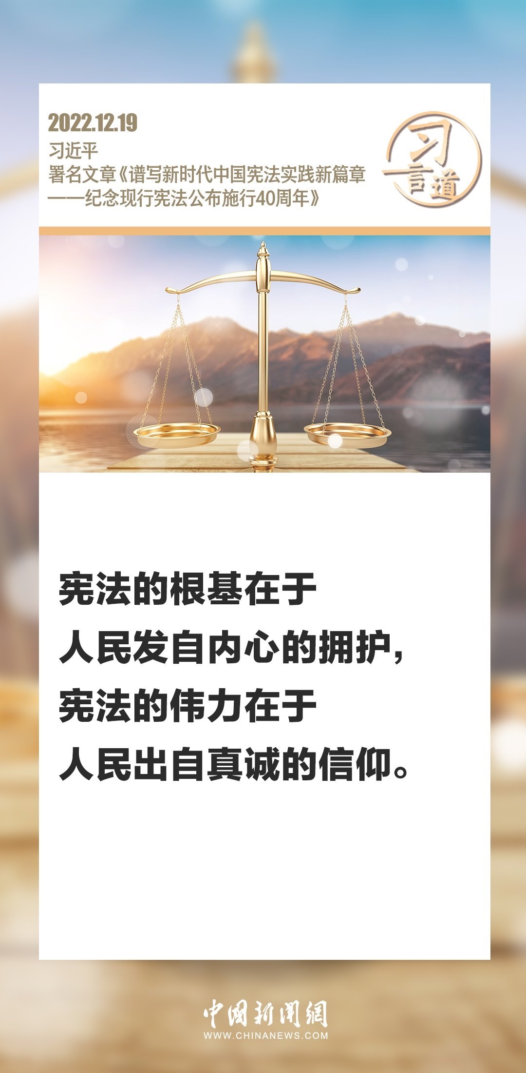 憲法是國(guó)家的根本法。習(xí)近平總書記始終重視憲法,強(qiáng)調(diào)要弘揚(yáng)憲法精神,樹立憲法權(quán)威。在第十個(gè)國(guó)家憲法日來(lái)臨之際,一起回顧總書記重要論述。